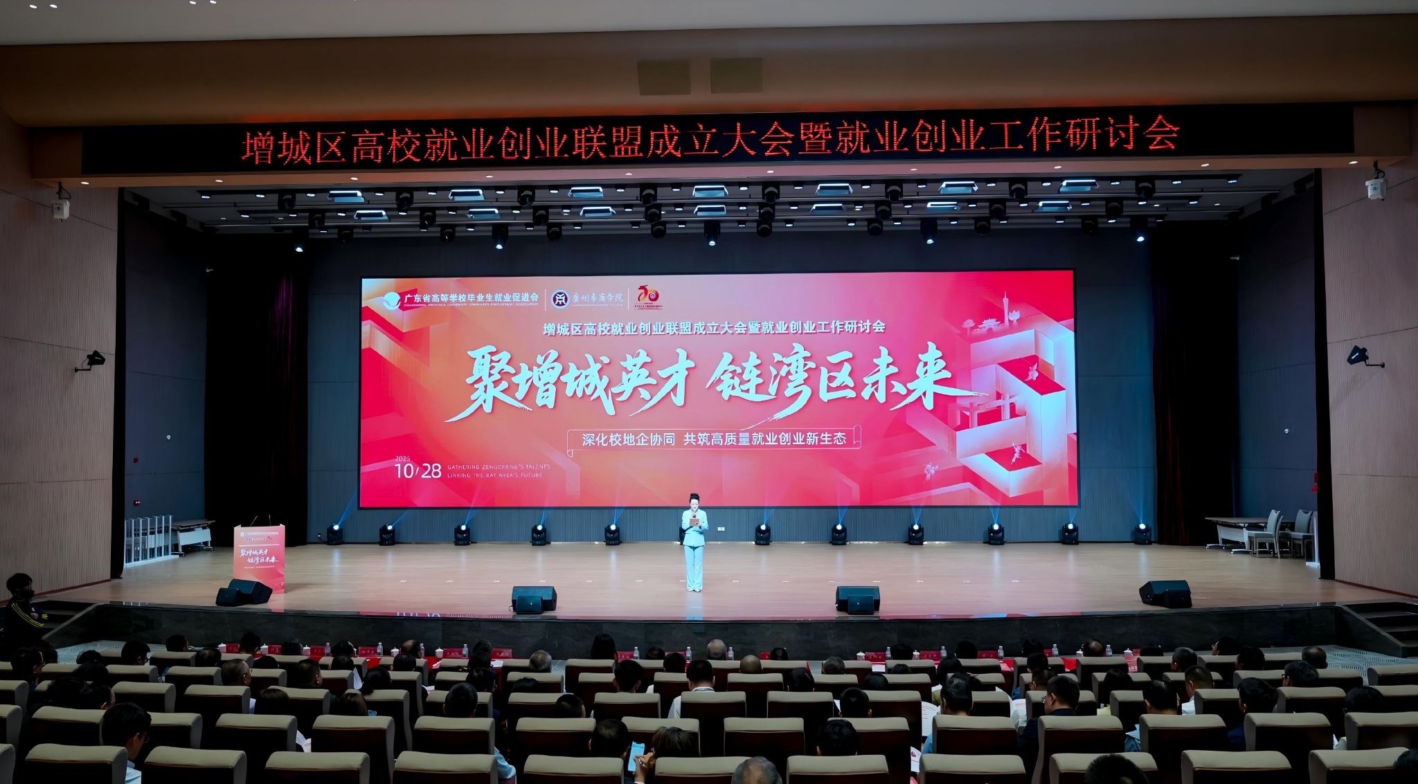 10月28日,增城区高校就业创业联盟成立大会暨就业创业工作研讨会在广州华商学院顺利举行。原广东省教育厅二级巡视员、广东省高等学校毕业生就业促进会会长邱克楠、常务副会长向丹阳、副会长林伟坚,增城区人力资源和社会保障局就业中心副部长王剑辉,增城区9所联盟成员院校代表、其他地区13所兄弟院校代表和增城区14家行业企业代表出席大会。我校校长助理邱漠河和学生就业创业处处长潘福中受邀参加会议。