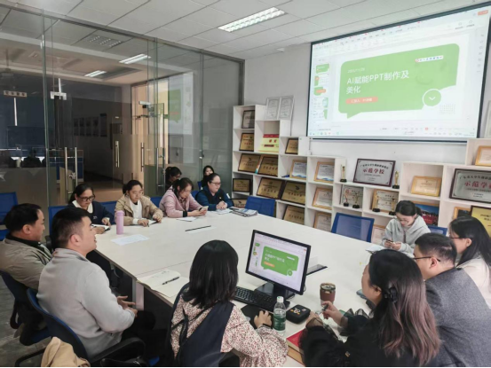 2025年11月28日下午,创业教育学院就业与创新创业教研中心在信工财经楼2120会议中心举办“AI赋能PPT制作及美化”专题教研活动。活动聚焦人工智能技术在教学课件设计中的创新应用,旨在提升教师信息化教学工具运用能力,助力课堂教学质量提升。校长助理邱漠河出席指导,教研中心全体教师参加培训,本次培训由中心骨干教师叶诗蕴主讲。