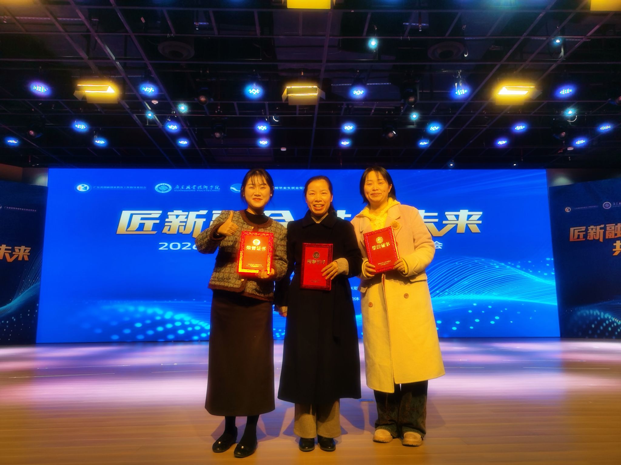 1月6日,“匠新融合·共创未来”2026年广东省创新创业教育高质量发展研讨会在广东职业技术学院(高明校区)成功举办。我校申报的《职业发展与就业指导》《Unity 3D交互设计》《传统图案与文创应用》三门课程经过层层评审,成功入选2025年广东省职业院校专创融合特色示范课程;学校校长助理邱漠河以及刘冬娜,胡锦玲,叶诗蕴等三位老师入选示范课程教师。